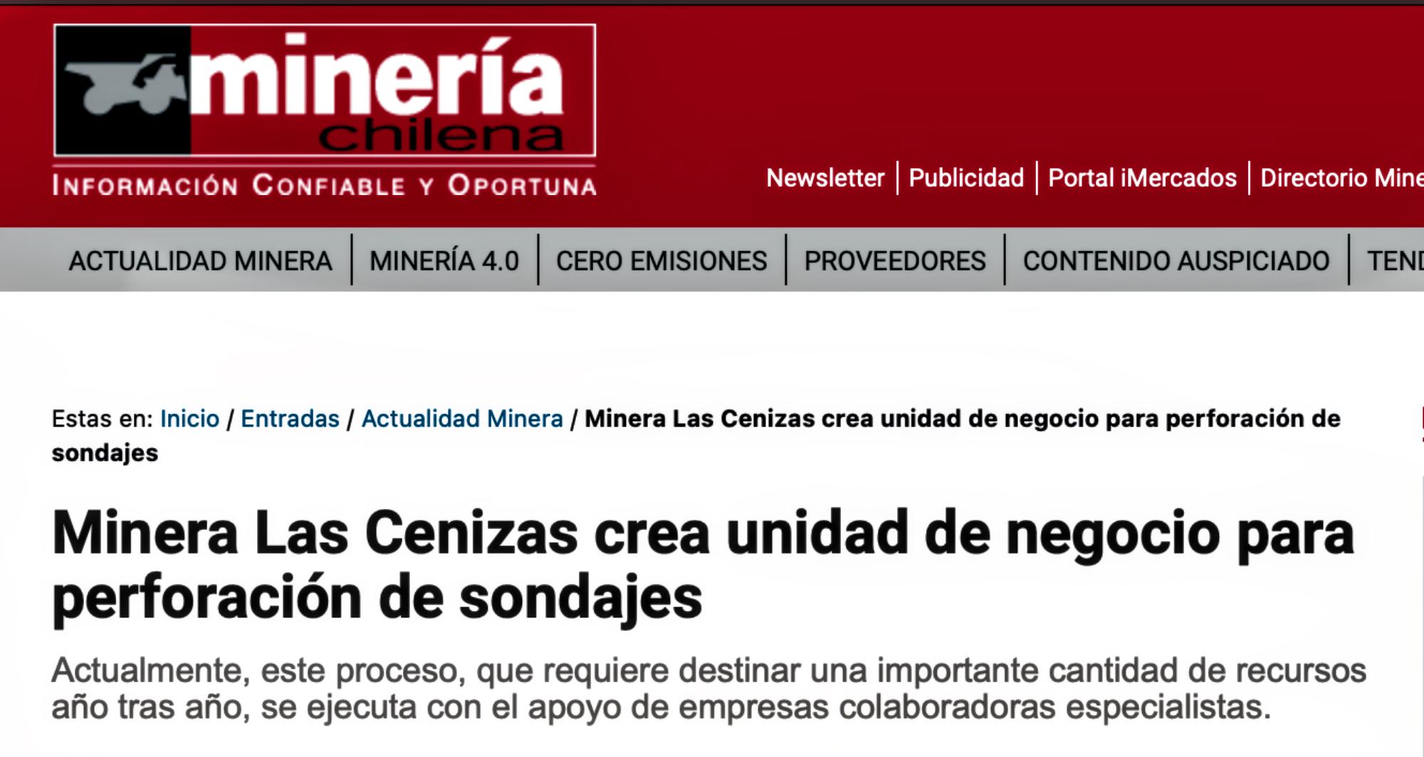 El Grupo Minero Las Cenizas está llevando adelante la incorporación de una nueva unidad de negocio, esta vez dedicada a la Perforación de Sondajes.