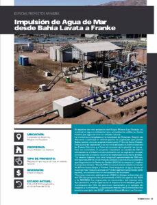 La iniciativa se emplaza en la localidad de Altamira, Región de Atacama y utilizará el mismo punto de captación que posee Bahía Lavata, ubicada a aproximadamente 77 km de faena Franke. Este punto de captación a su vez está ubicado a 2,5 km al noreste de Caleta Cifuncho y a 7 km al noroeste de la planta Las Luces. Una vez concluido, el proyecto impulsará un caudal de 100 I/s utilizando la infraestructura existente en la captación actual, construyendo un nuevo sistema de impulsión hasta faena Franke. «La nueva tubería, con una longitud aproximada de 100 km, transportará 1001/s en un trazado paralelo a las tuberías existentes que llegan hasta la Planta de Óxidos (POX) de la empresa», explica la empresa minera. «Desde POX la nueva tubería cubrirá un tramo de 60 km hasta llegar a Franke. Para impulsar el agua desde el nivel del mar hasta la altitud de Franke (aproximadamente 1.690 msnm), se construirán tres estaciones de bombeo».