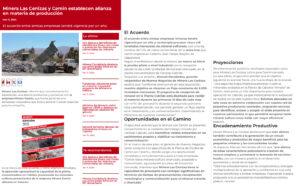 Minera Las Cenizas informó que recientemente ha establecido una alianza productiva y comercial con la empresa Minera Cemin, que forma parte de una estrategia corporativa que busca generar nuevos negocios para la compañía.