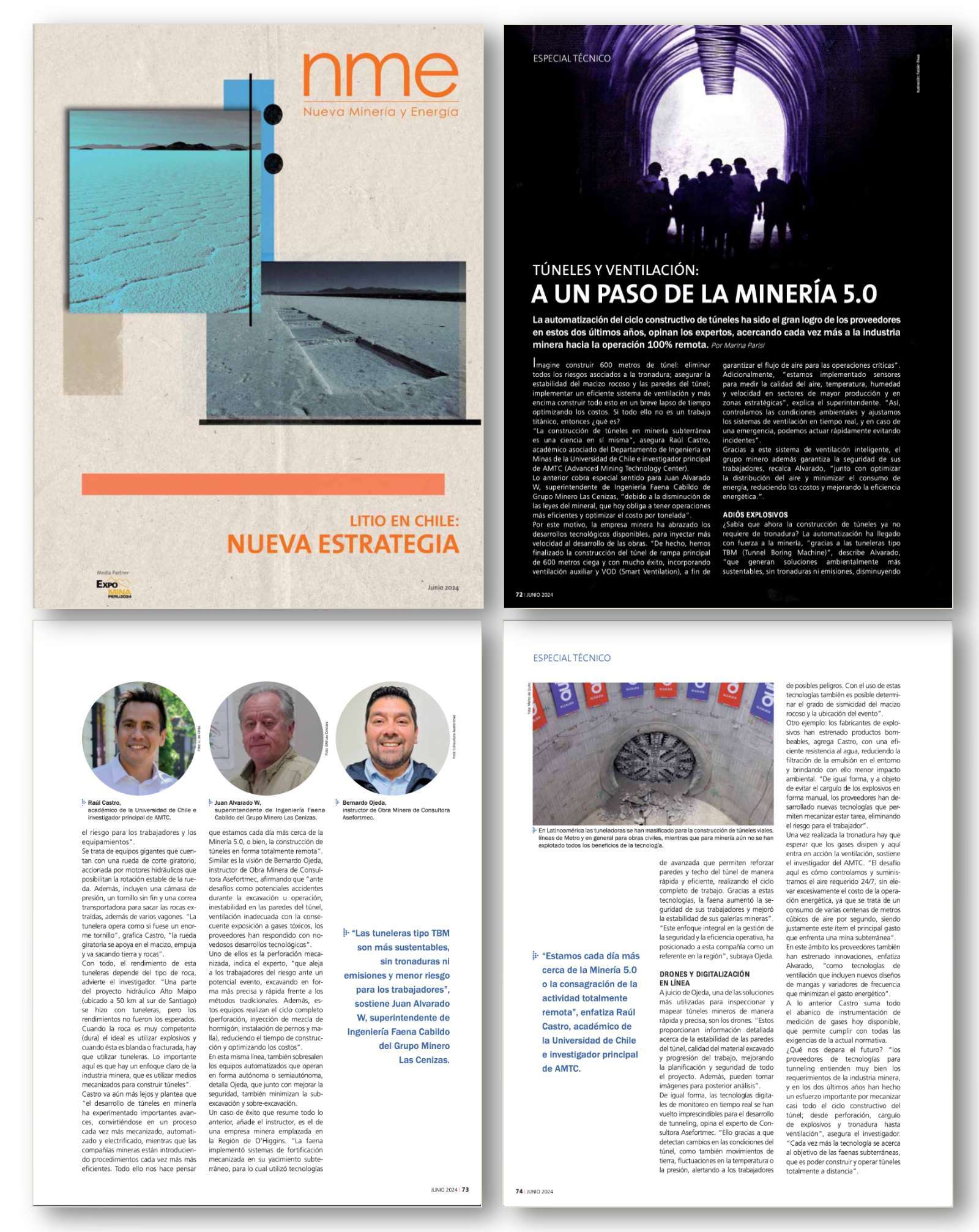 Revista Nueva Minería y Energía en su edición de Junio 2024 publicó el reportaje técnico «Túneles y Ventilación» en el que participa en forma destacada Juan Alvarado W, Superintendente de Ingeniería Faena Cabildo del Grupo Minero Las Cenizas.