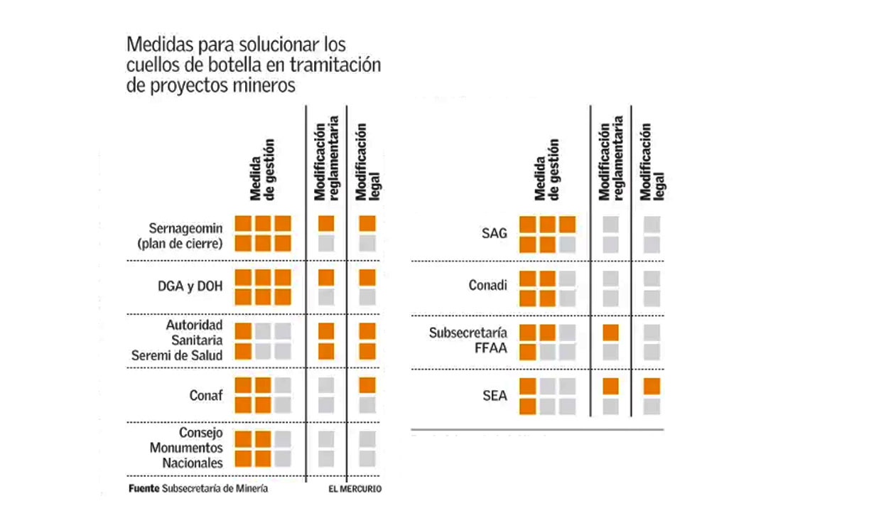 Con la idea de disminuir estos plazos identificando cuellos de botella que dilatan y complican la obtención de los permisos asociados a estas inversiones, en abril del año pasado el Ministerio de Minería conformó una mesa de trabajo con el objetivo de plantear también medidas concretas de solución y así acortar los plazos de tramitación.