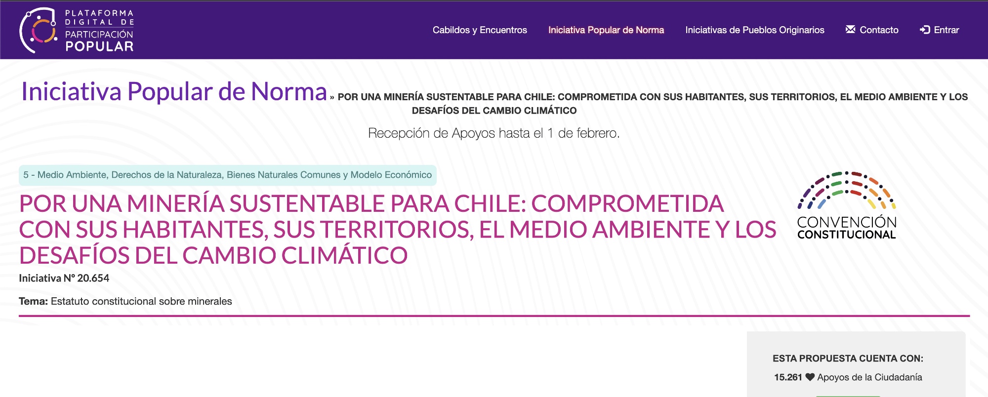 Industria minera logra firmas para la Iniciativa Popular de Norma