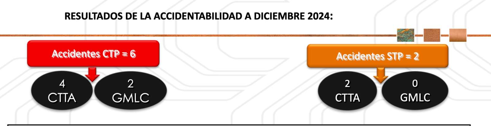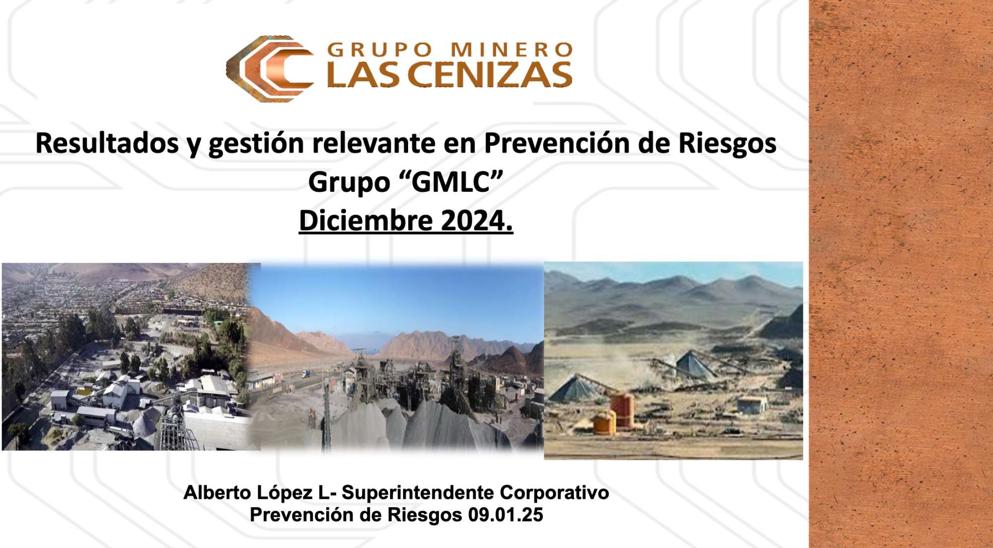 - Minera Las Cenizas logró en 2024 una mejora del 38% en accidentabilidad en comparación con 2023. En este logro destaca faena Taltal y sus instalaciones de Planta Las Luces, Mina Altamira, Planta de Óxidos y Mina Barreal Seco, que alcanzaron el récord histórico para la empresa, de 2.543.925 horas de exposición a riesgos, con CERO accidentes CTP y un accidente STP, con una dotación de 1.357 personas.