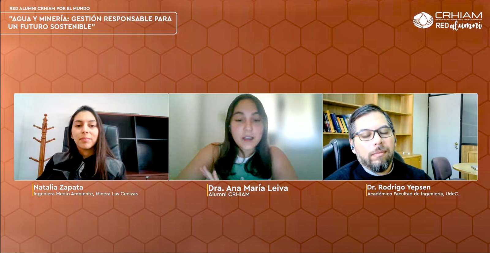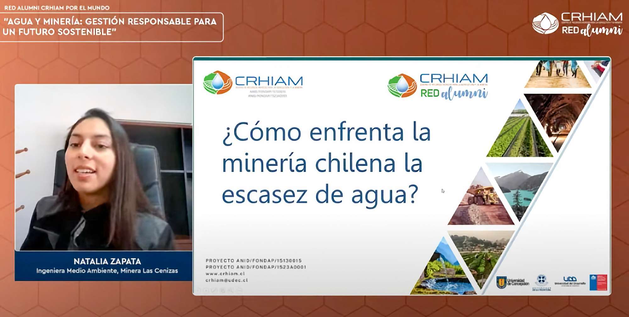 Como parte de su programa, la Red Alumni del Centro de Recursos Hídricos para la Agricultura y la Minería (CRHIAM) invitó a nuestra profesional de Planta Las Luces, Natalia Zapata, a exponer y comentar las mejores prácticas que Minera Las Cenizas desarrolla para contribuir con el cuidado del entorno.