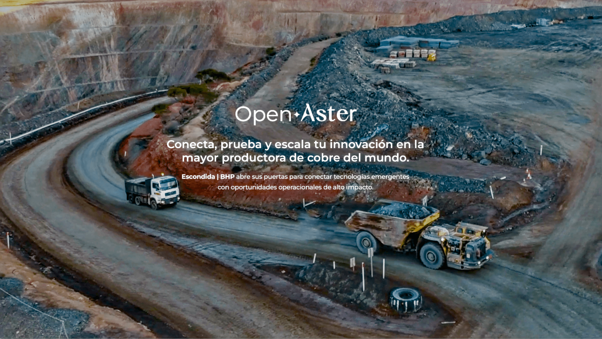 - “Open Aster Escondida | BHP”, desarrollado por BHP en conjunto con Aster, contempla hasta US$2 millones para pilotos tecnológicos con foco en eficiencia, seguridad y digitalización.