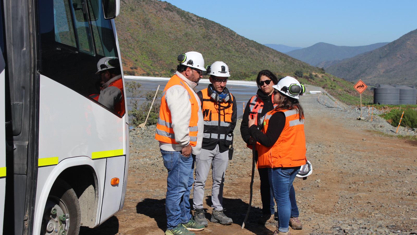 Acompañaron a don Martín en el recorrido Laura Lazo, Supervisora de Terreno Depositación de Relaves; Johan Tapia, Jefe de Turno Práctico de Planta; Lyceth Novoa, Ingeniera Asistente en Medio Ambiente; y la Coordinadora del Área Comunidades, Dannae Cataldo.