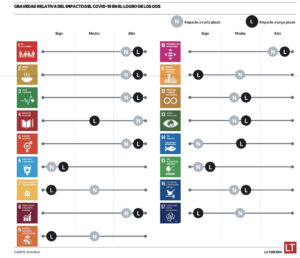 El estudio trazó un mapa de los impactos a corto y largo plazo de la pandemia, y aunque afecta a todos los ODS, los relacionados con cuestiones socioeconómicas se ven afectados de forma desproporcionada. «Incluso antes de la pandemia, el mundo no estaba avanzando a la velocidad ni a la escala necesarias para alcanzar los ODS en 2030», indica el informe.