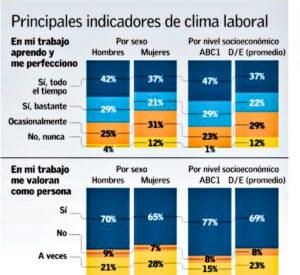 - Estudio «Termómetro del clima laboral en las organizaciones«, realizado por la Universidad de los Andes, y la encuestadora Tú Influyes, revela la percepción que tienen los trabajadores chilenos de la valoración que se les da en el lugar de trabajo y de las oportunidades de aprendizaje que se les brindan.