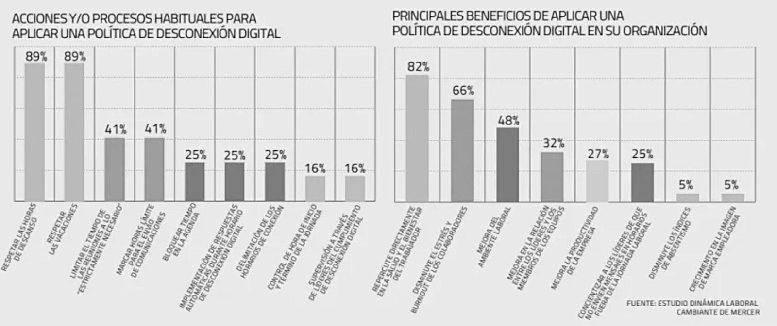 El análisis de los datos sugiere que la ley vigente desde marzo de 2020 sobre períodos mínimos de desconexión, no se está cumpliendo efectivamente, y señala la oportunidad de liderar cambios significativos en la cultura laboral, para promover un equilibrio saludable entre el trabajo y la vida personal que, además de mejorar la salud y el bienestar general, debería contribuir a una mayor satisfacción y rendimiento laboral.