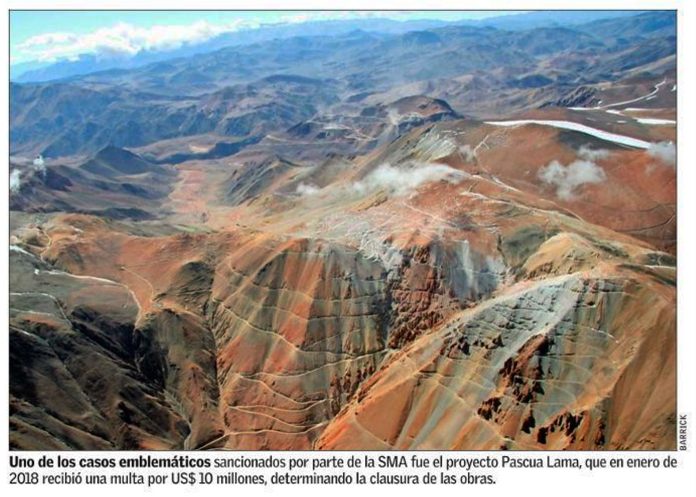 Uno de los casos emblemáticos sancíonados por parte de la SMA fue el proyecto Pascua Lama, que en enero de 2018 recibió una multa por US$10 millones. determinando la clausura de las obras.