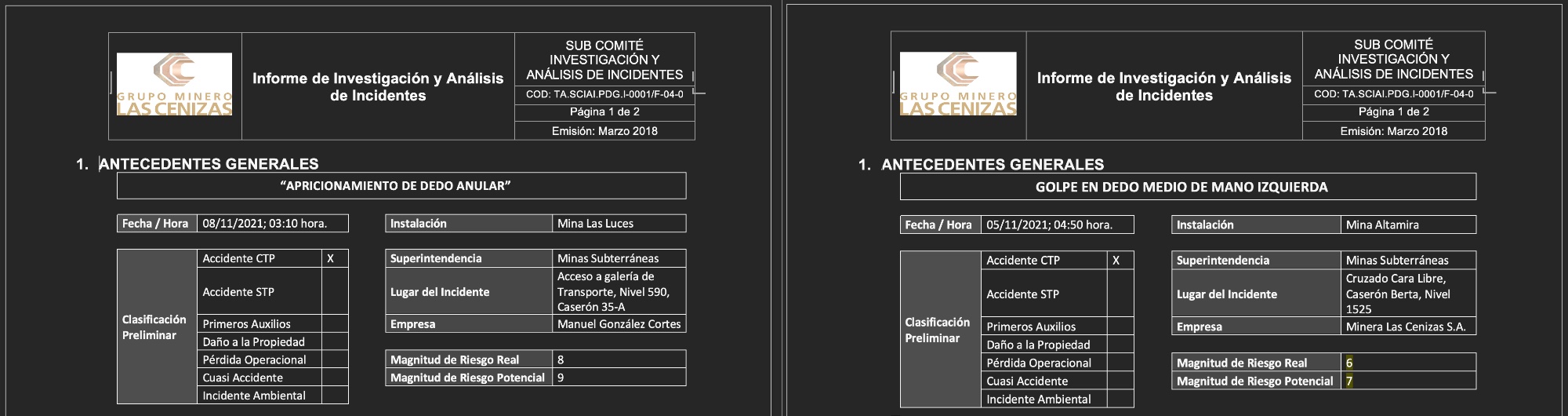Dos nuevos accidentes con tiempo perdido, uno en Mina Altamira y otro en Mina Las Luces de faena Taltal, se suman a los 8 accidentes ya ocurridos en el transcurso del año. Las estadísticas son demoledoras, 3 en Faena Taltal (3 CTP) y 5 en Faena Cabildo (3 CTP + 2 STP).