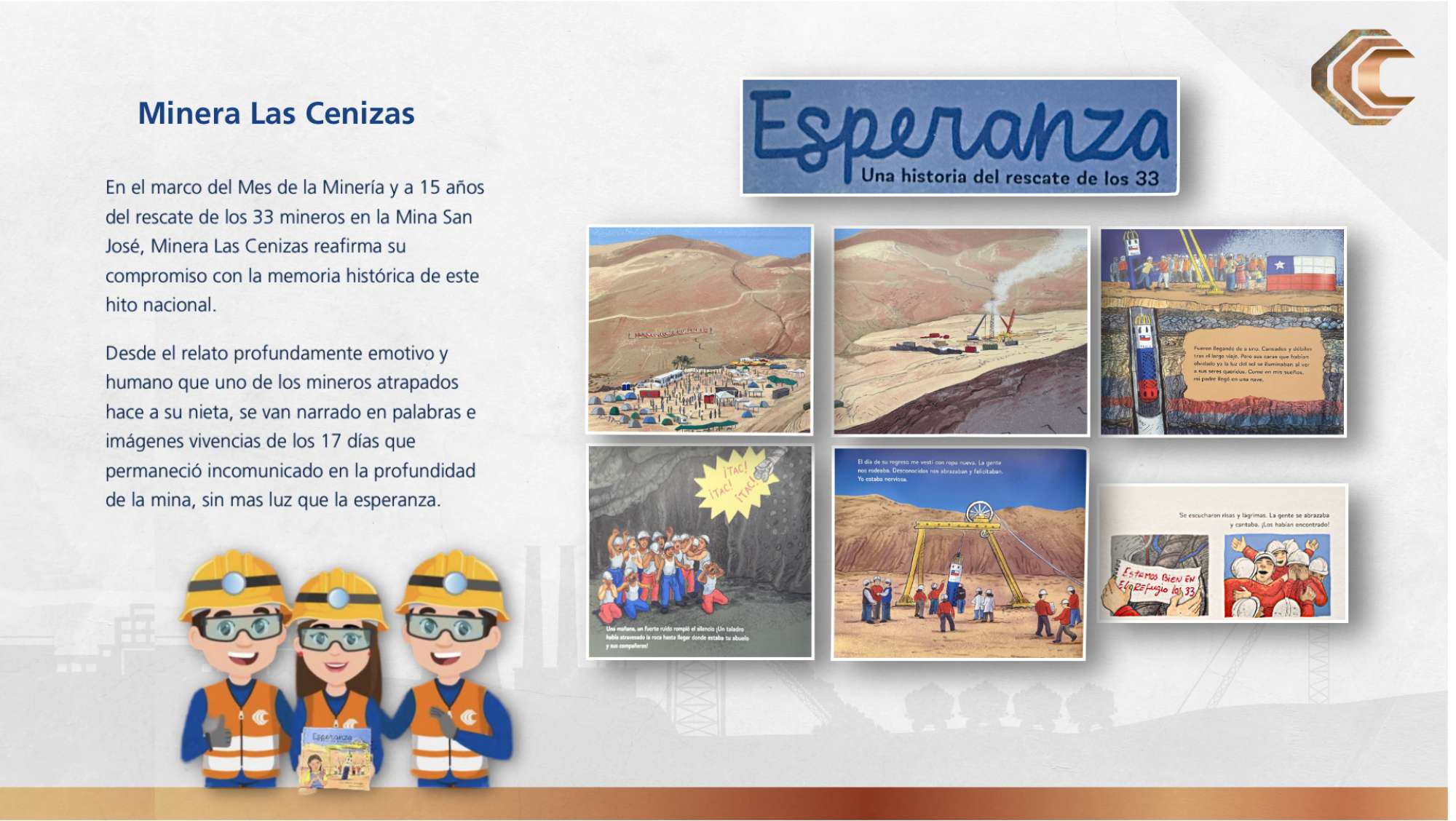 En el marco del Mes de la Minería y a 15 años del rescate de los 33 mineros en la Mina San José, Minera Las Cenizas reafirma su compromiso con la memoria histórica de este hito nacional.