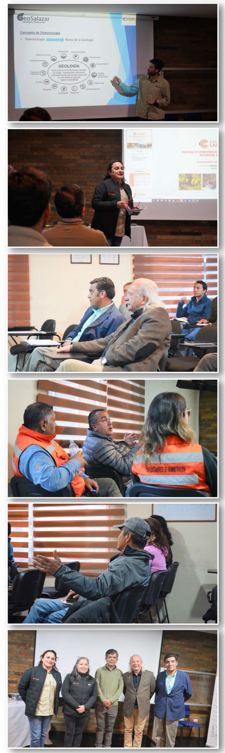 Asimismo, se mencionaron los compromisos ambientales voluntarios que la empresa definió en el proceso de Evaluación Ambiental del Proyecto COMS, entre los que se encuentra el monitoreo paleontológico y su inducción correspondiente para los participantes de la reunión y trabajadores de Minera Las Cenizas. La inducción estuvo a cargo de Gabriel Mella, profesional de la empresa GeoSalazar que liderará los monitoreos paleontológicos.