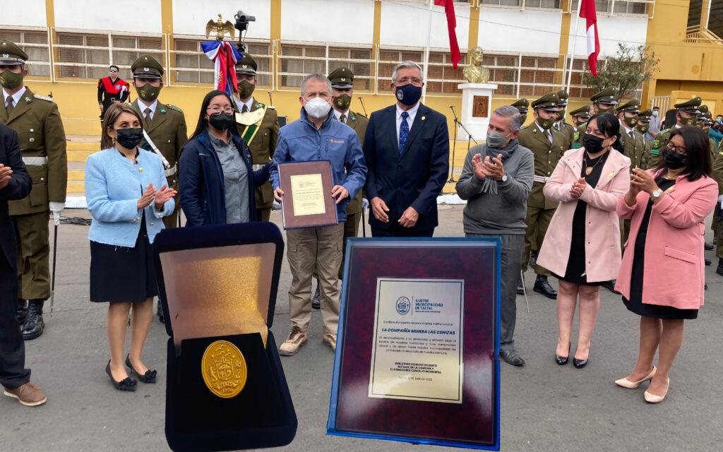 En el contexto de la celebración del 164° Aniversario de la ciudad, la Municipalidad de Taltal otorgó un reconocimiento a Minera Las Cenizas por el permanente apoyo que la Compañía realiza a la comunidad.