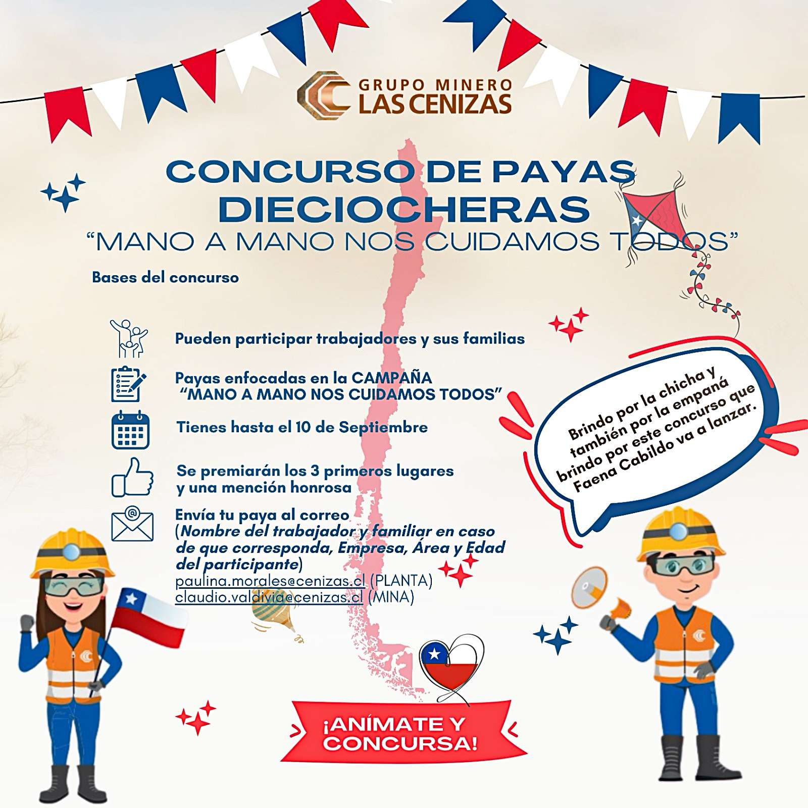 - El Departamento de Prevención de Riesgos de Faena Cabildo, junto con lanzar la campaña «Mano a mano, nos cuidamos todos«, invita a participar en el concurso de payas diciocheras.