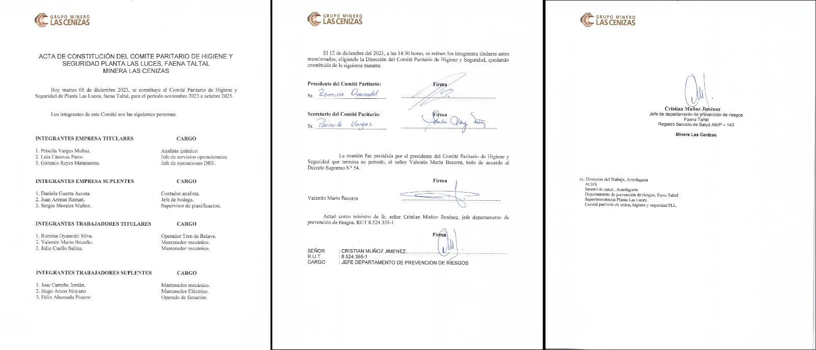 - En Planta Las Luces Taltal, el martes 05 de diciembre de 2023, se llevó a cabo la constitución del Comité Paritario de Higiene y Seguridad para el período comprendido entre noviembre de 2023 y octubre de 2025.