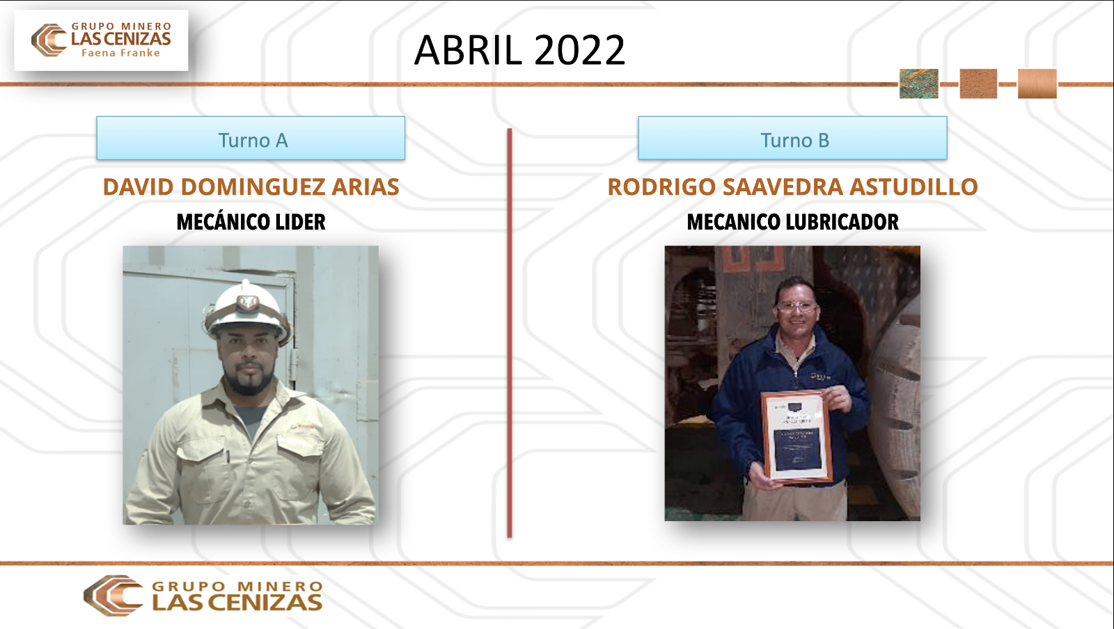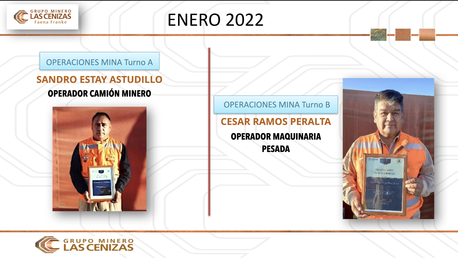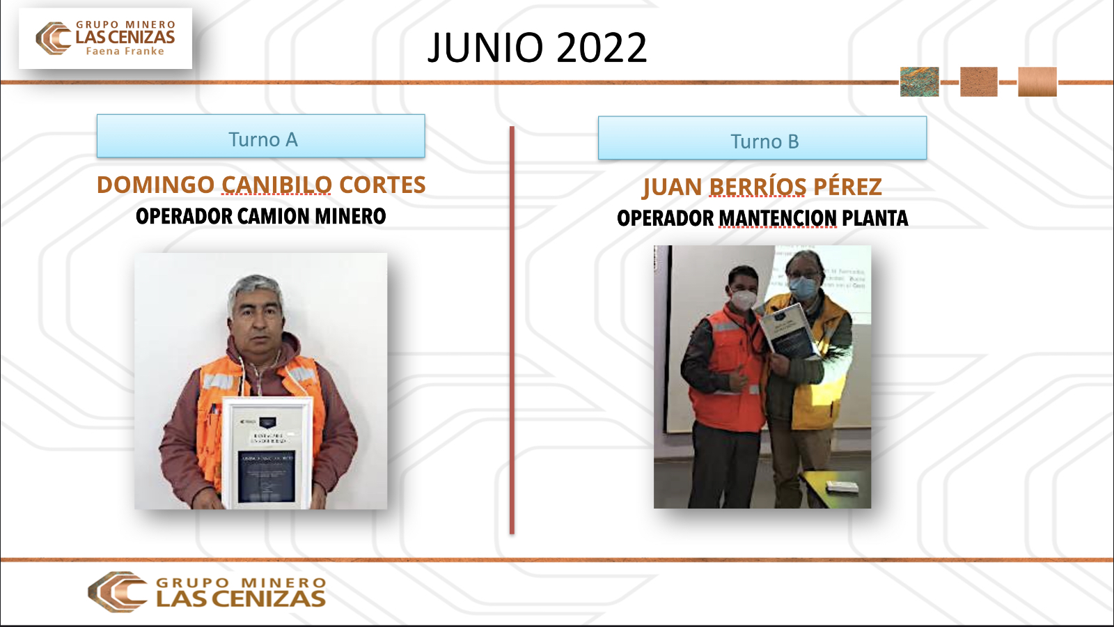 En faena Franke, la selección de “Los Mejores en Seguridad” es una tarea que realizan las jefaturas directas con sus equipos de trabajo para destacar y visibilizar el cumplimiento individual y demostrado de los estándares del Autocuidado y Mutuocuidado .