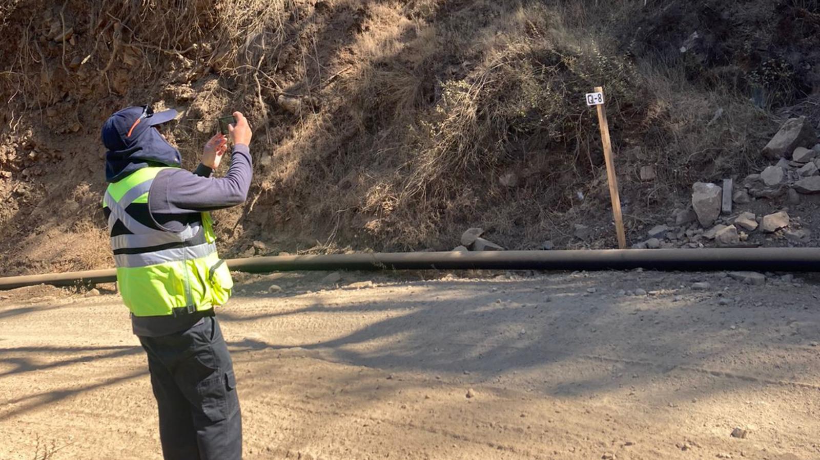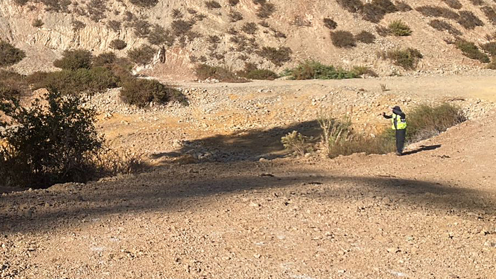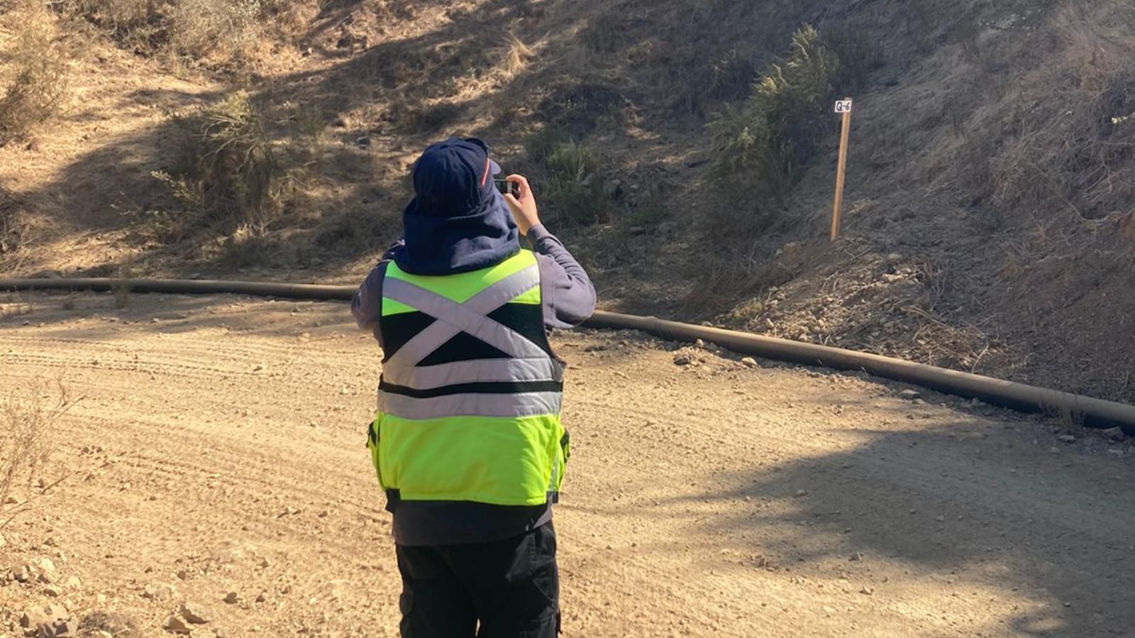 En este recorrido por la quebradas del terreno demarcado, el profesional del Laboratorio ALS, empresa denominada como Entidad Técnica de Fiscalización Ambiental (ETFA), Luis Marabolí, fue acompañado por una profesional de la faena, sin presencia de integrantes de la comunidad que conforman el Equipo de Monitoreo Ambiental Participativo (MAP).