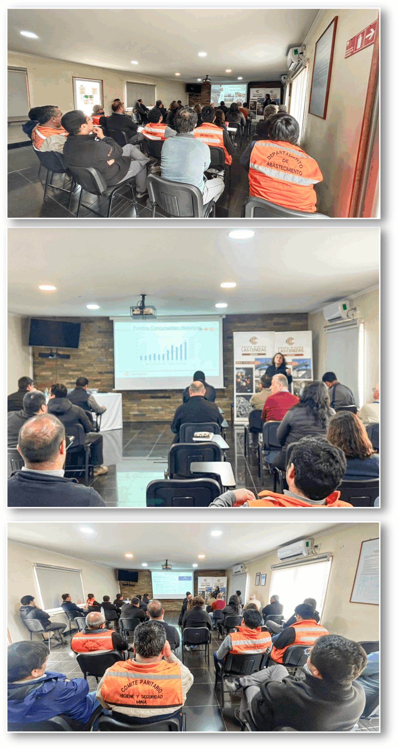 Las presentaciones se realizaron en la Sala de Capacitación de la empresa y contaron con la presencia del Superintendente Corporativo de Prevención de Riesgos, Alberto López; el Gerente de Operaciones Cabildo, Andrés Monardes; superintendentes y jefes de áreas locales.