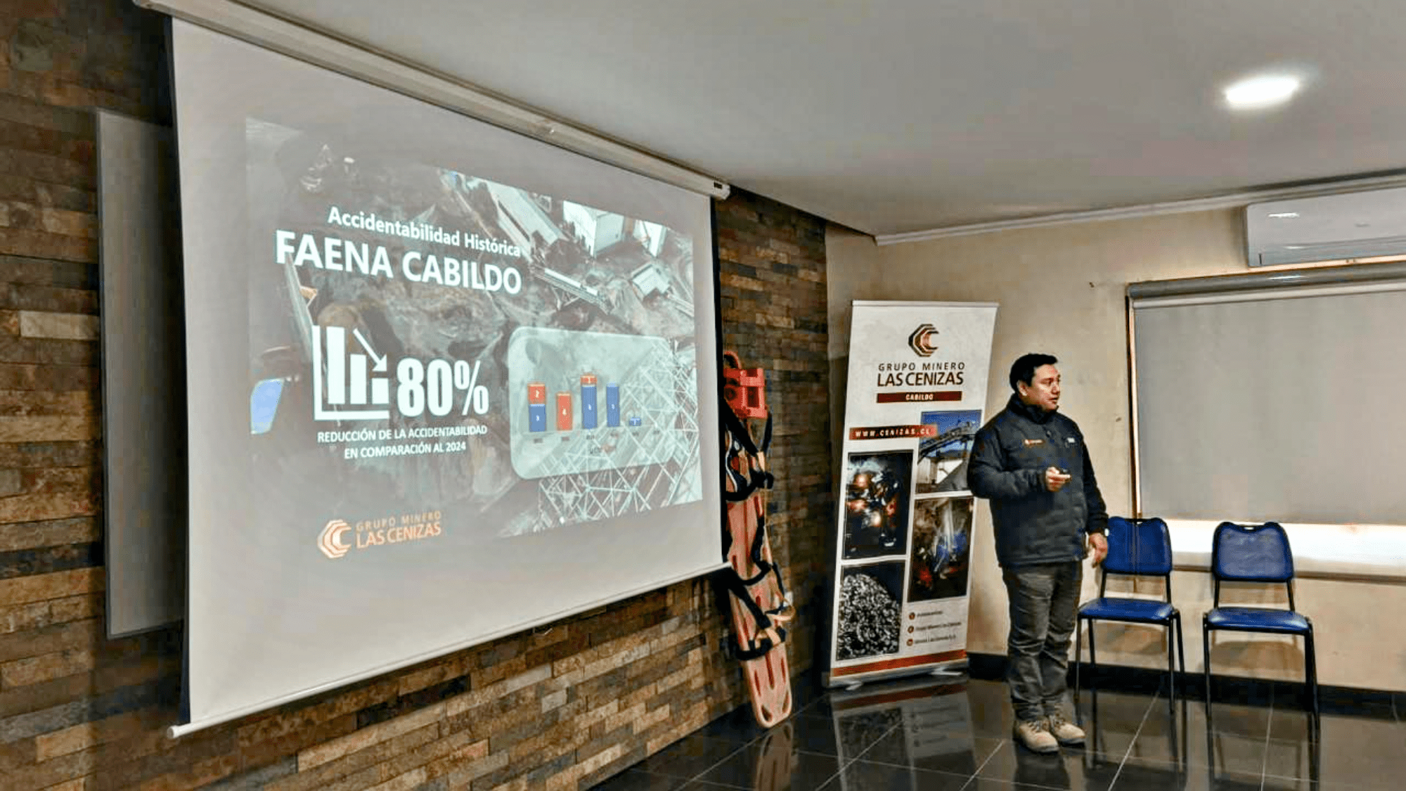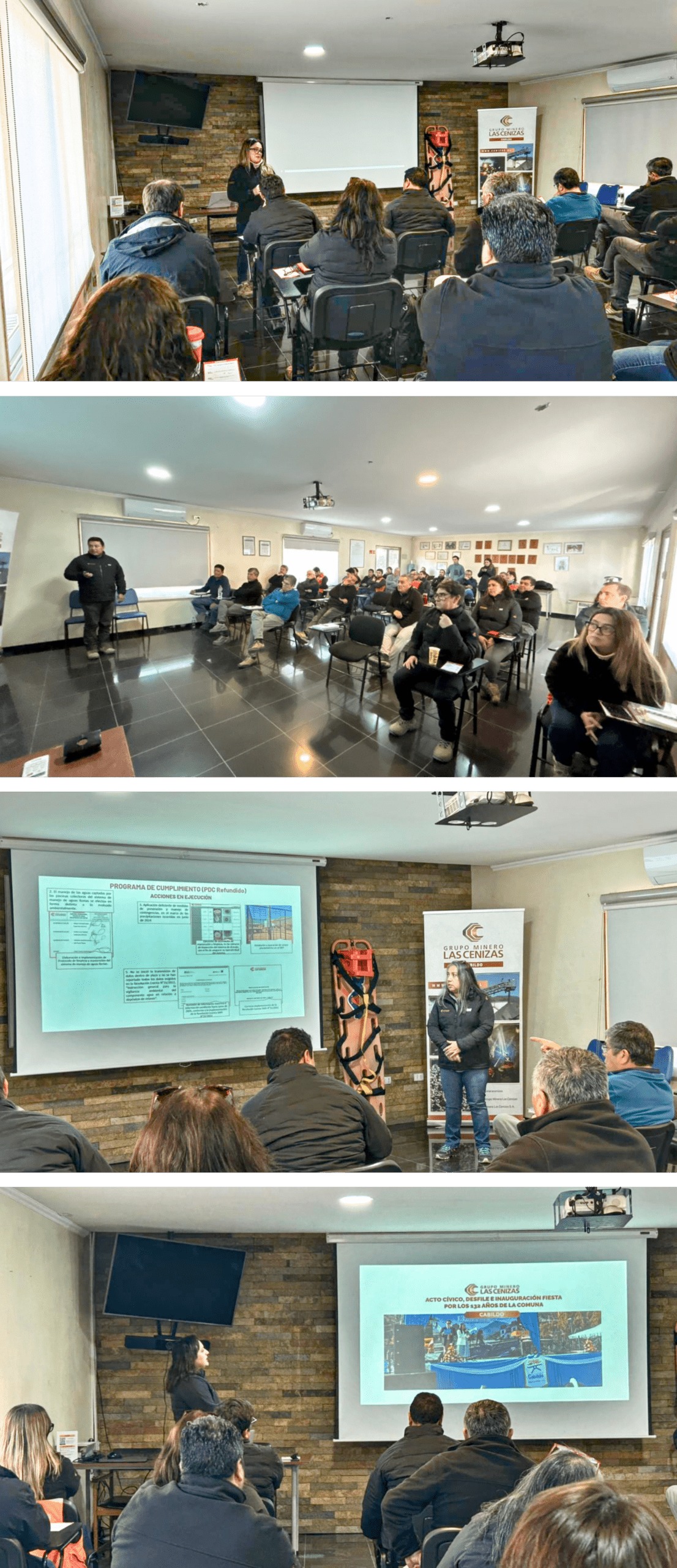 La convocatoria se realizó en la Sala de Capacitación de la empresa y contó con la presencia del Corporativo; quien estuvo acompañado por el Gerente de Operaciones de Minera Las Cenizas Cabildo, Andrés Monardes Rozas, superintendentes y jefes de áreas locales.