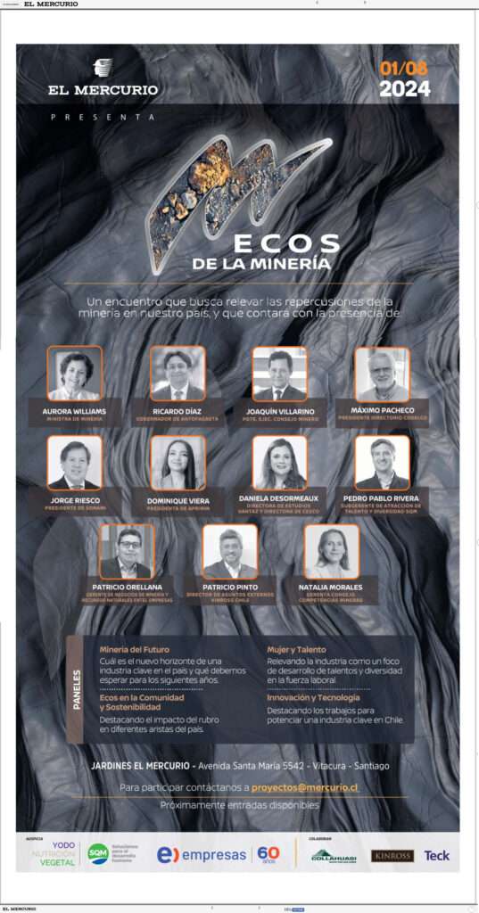 En razón de celebrarse el Mes de la Minería, diario El Mercurio realizará el día 1º de agosto un encuentro que busca relevar las repercusiones de la industria en nuestro país, que contará con la presencia de importantes actores del ecosistema minero nacional .