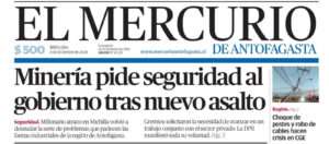 El asalto a Minera Michilla ocurrido la madrugada del lunes volvió a encender las alarmas en el sector minero. Una banda de al menos diez delincuentes irrumpió en las instalaciones, redujo a los trabajadores y sustrajo más de 12 toneladas de cobre, avaluadas en $100 millones.