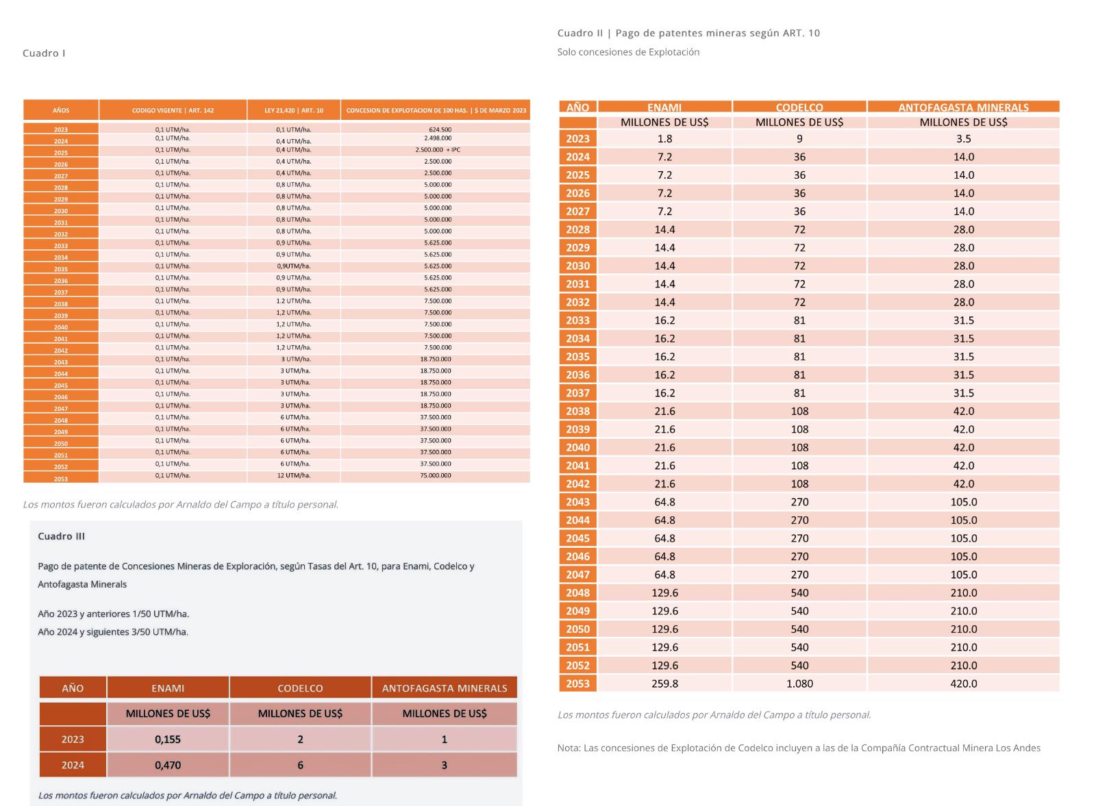 - Las patentes para concesiones de exploración también aumentarían notablemente, triplicándose en algunos casos.