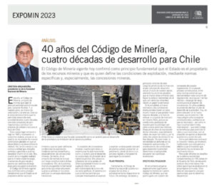 Este año, también celebraremos los 40 años del Código de Minería, un instrumento jurídico que ha otorgado certeza y protección, tanto al derecho del descubridor como a la propiedad minera constituida.