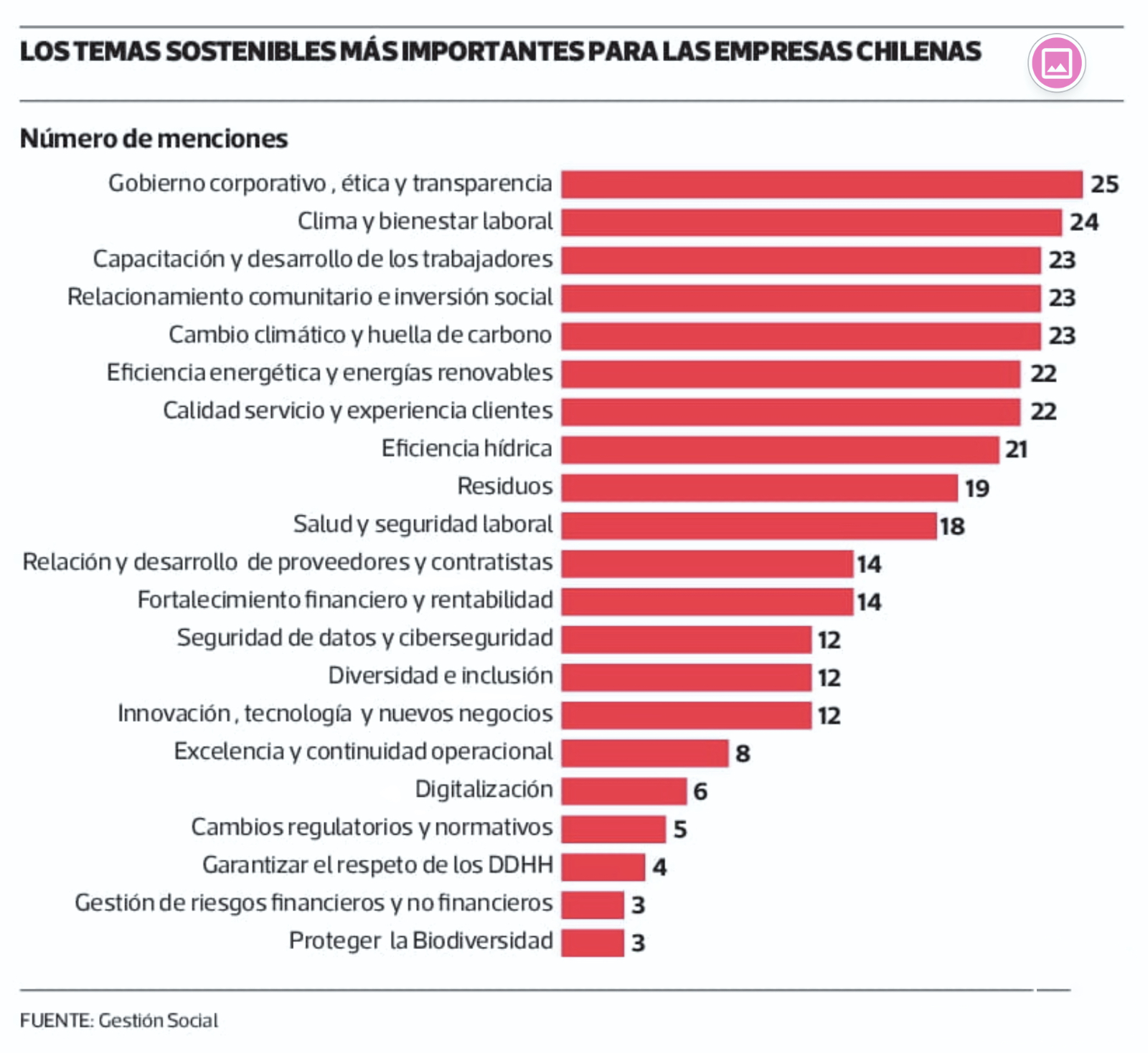 Según el informe «Temáticas relevantes para la sostenibilidad de las empresas en Chile”, presentado por Gestión Social, empresa consultora y de investigaciones sobre temas de sostenibilidad, los directivos y primera línea de empresas consultadas destacan entre las políticas más manifiestas: