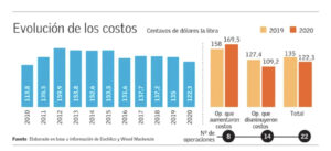 El vicepresidente ejecutivo de Cochilco, Marco Riveros, explicó que la pandemia afectó una serie de factores que inciden directamente en los costos, como el mayor valor del tipo de cambio y la menor actividad económica que incidió en una caída en el precio de insumos como combustibles, energía eléctrica, materiales y ácido sulfúrico,