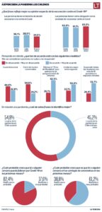 El último sondeo de Criteria reveló que hay una fatiga pandémica evidente y que la gente ha dejado de creer en la eficacia de las medidas restrictivas, lo que se refleja en que si en abril de 2021 un 21,6% quienes estaban en desacuerdo con las cuarentenas totales, este enero la cifra en desacuerdo se duplicó, llegando al 44,6%; situación que también ocurre con quienes apoyaban el cierre de locales comerciales, que cayó del 58% al 24,2%.