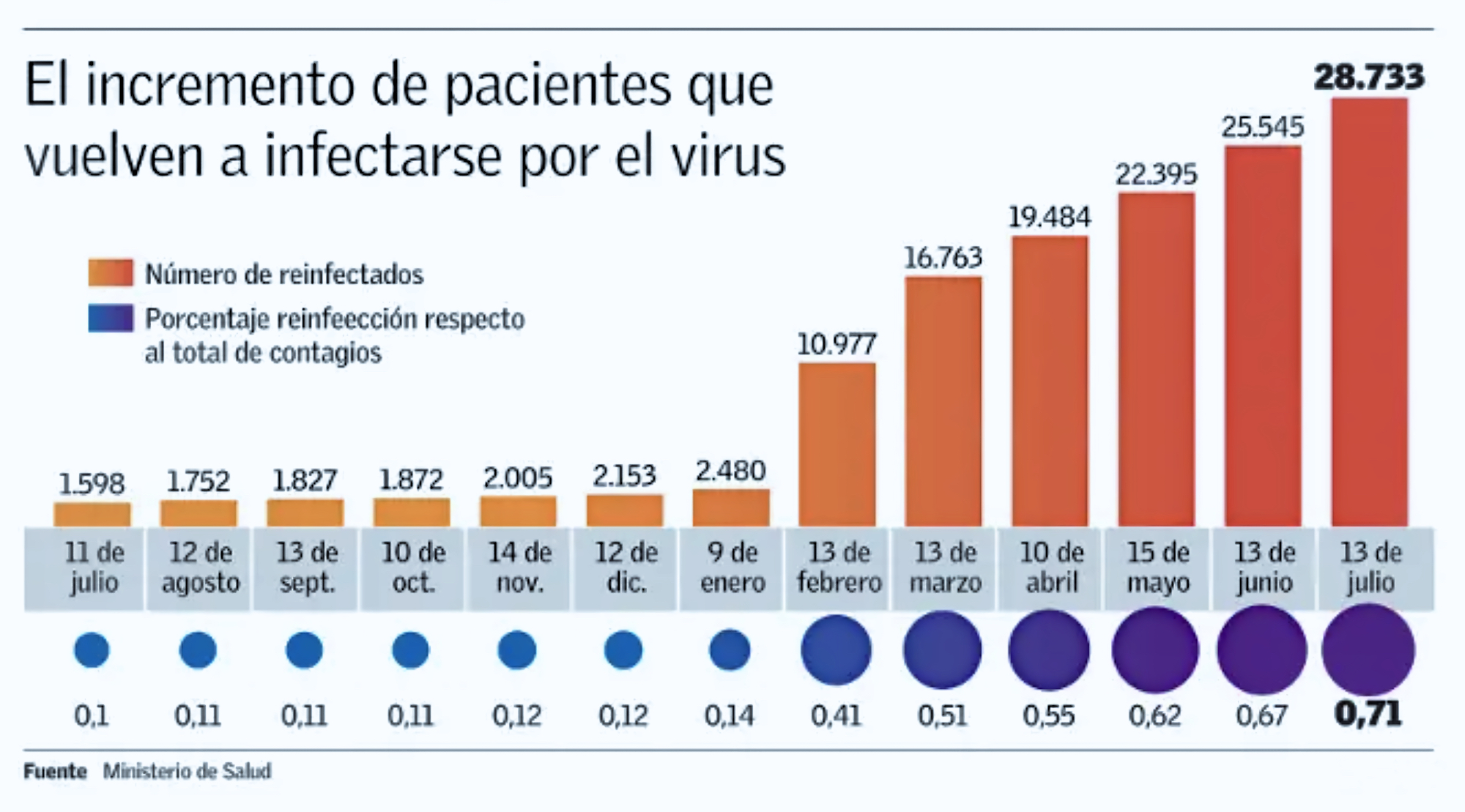 Reinfecciones de pacientes por covid-19 han aumentado en 13 veces este año y se disparan a 28 mil en solo siete meses.