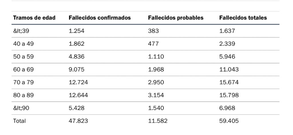 La edad también influye, pues gran parte de los decesos se produce en los grupos etarios más avanzados.