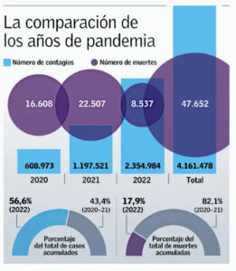 Si bien la mortalidad, que es la cantidad de muertos por Covid, se ha incrementado en el último tiempo, la letalidad, que es la cantidad de personas fallecidas versus la cantidad de personas contagiadas, en la variable ómicron, ha ido bajando porque el virus es menos letal y por una mayor capacidad, tanto del sistema público como del privado, para tratar a los enfermos graves de Covid-19.