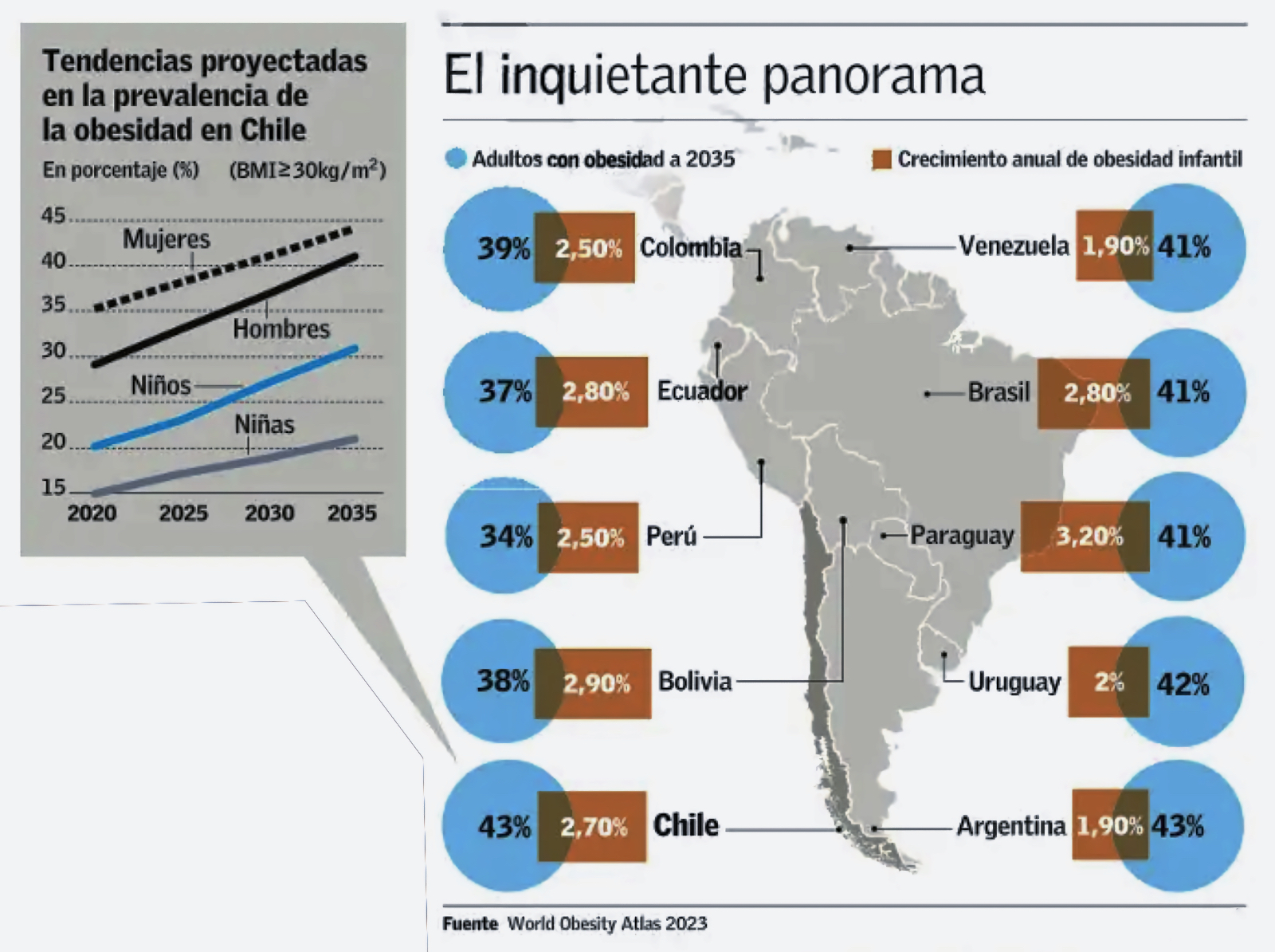 La Federación Mundial de Obesidad asegura que hacia 2035 el gasto en salud superará los US$ 13 mil millones, duplicando la cifra de US$ 6 mil millones que se calculaba para 2020.
