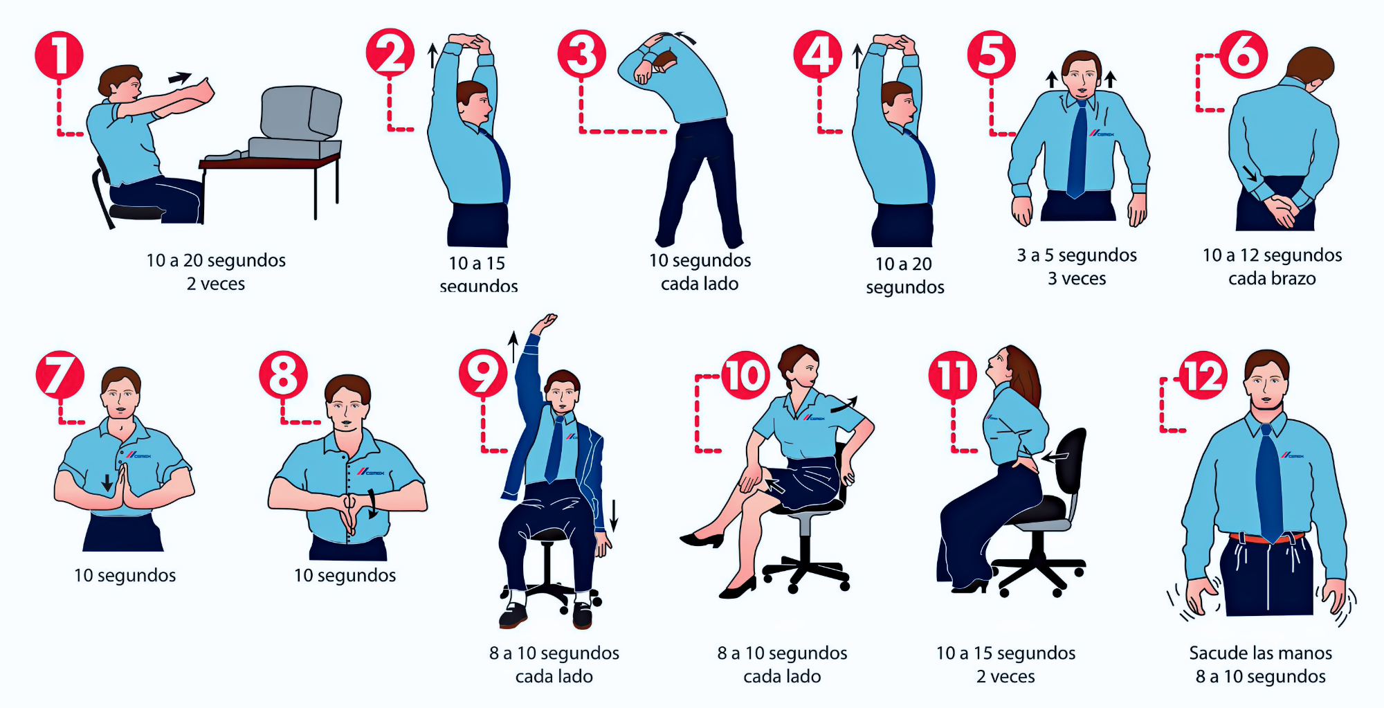 - rutinas de estiramiento en el mismo puesto de trabajo.