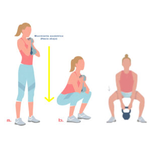 - La contracción muscular que se produce hacia abajo, llamada excéntrica, durante 3 a 5 segundos al día, 5 días a la semana, aumenta en la mitad de tiempo, la misma fuerza que se lograría subiendo los pesos, y manteniéndolos quietos.