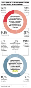 - El Observatorio del Contexto Económico de la Universidad Diego Portales (OCEC-UDP) señaló que si se materializa la propuesta de llegar hacia mediados de 2024 a un salario mínimo de $500.000 y considerando que ya se habrá reducido la jornada laboral de 45 a 44 horas, el alza del costo salarial por hora podría llegar hasta el 24,7%.