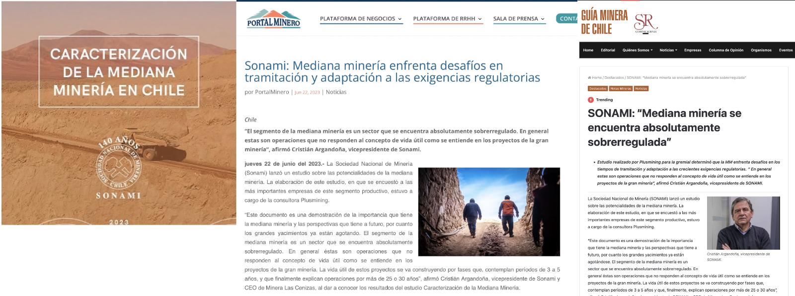 - La Sociedad Nacional de Minería publicó un estudio que ofrece un análisis detallado de la industria minera, según el cual la producción de la mediana minería ha experimentado un aumento del 22% en los últimos cinco años, cifra que de acuerdo a la SONAMI, podría duplicarse en el futuro.