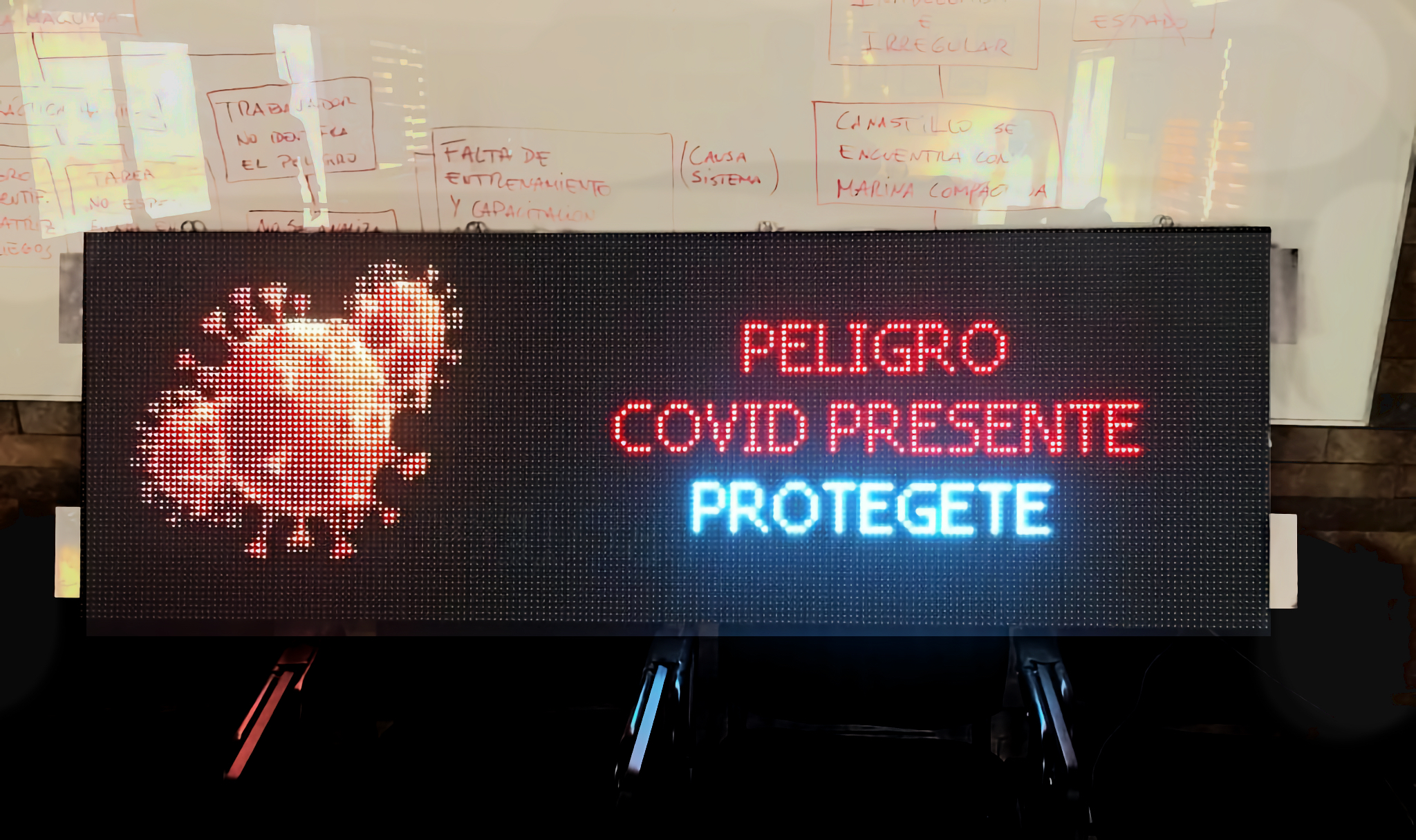 Este martes 11 de enero, en faena Cabildo se realizaron las primeras pruebas técnicas de la señalética dinámica (letreros luminosos con tecnología Led) que pronto se instalarán en lugares y espacios comunes visibles para todos los trabajadores en faenas Cabildo y Taltal.