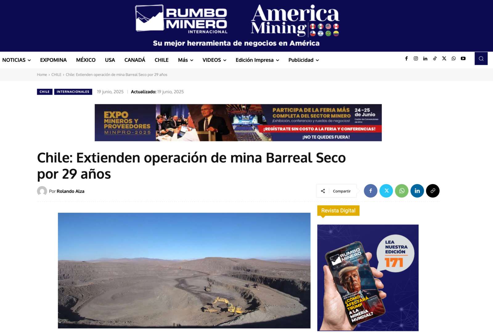 - El Servicio de Evaluación Ambiental (SEA) calificó favorablemente la Declaración de Impacto Ambiental (DIA) del proyecto “Continuidad Operacional Mina Barreal Seco”, presentada por Minera Las Cenizas.