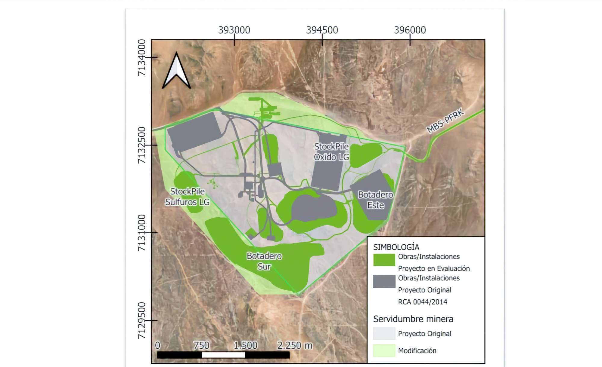 La superficie total de obras e instalaciones mineras del proyecto original se modificará en 281 ha, totalizando 425 ha necesarias para la continuidad operacional de MBS. Adicionalmente, al camino privado existente entre MBS-POx, se implementará otro camino privado entre MBS-Acceso Franke de 26 ha.