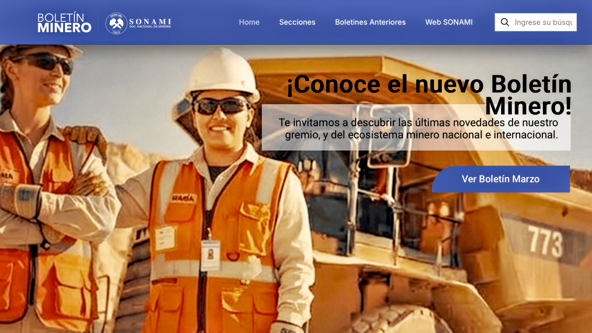 - La Sociedad Nacional de Minería anunció el lanzamiento de un sitio web que en formato multiplataforma alojará en versión digital el tradicional *Boletín Minero*, que la SONAMI viene publicando desde su fundación, en 1883.