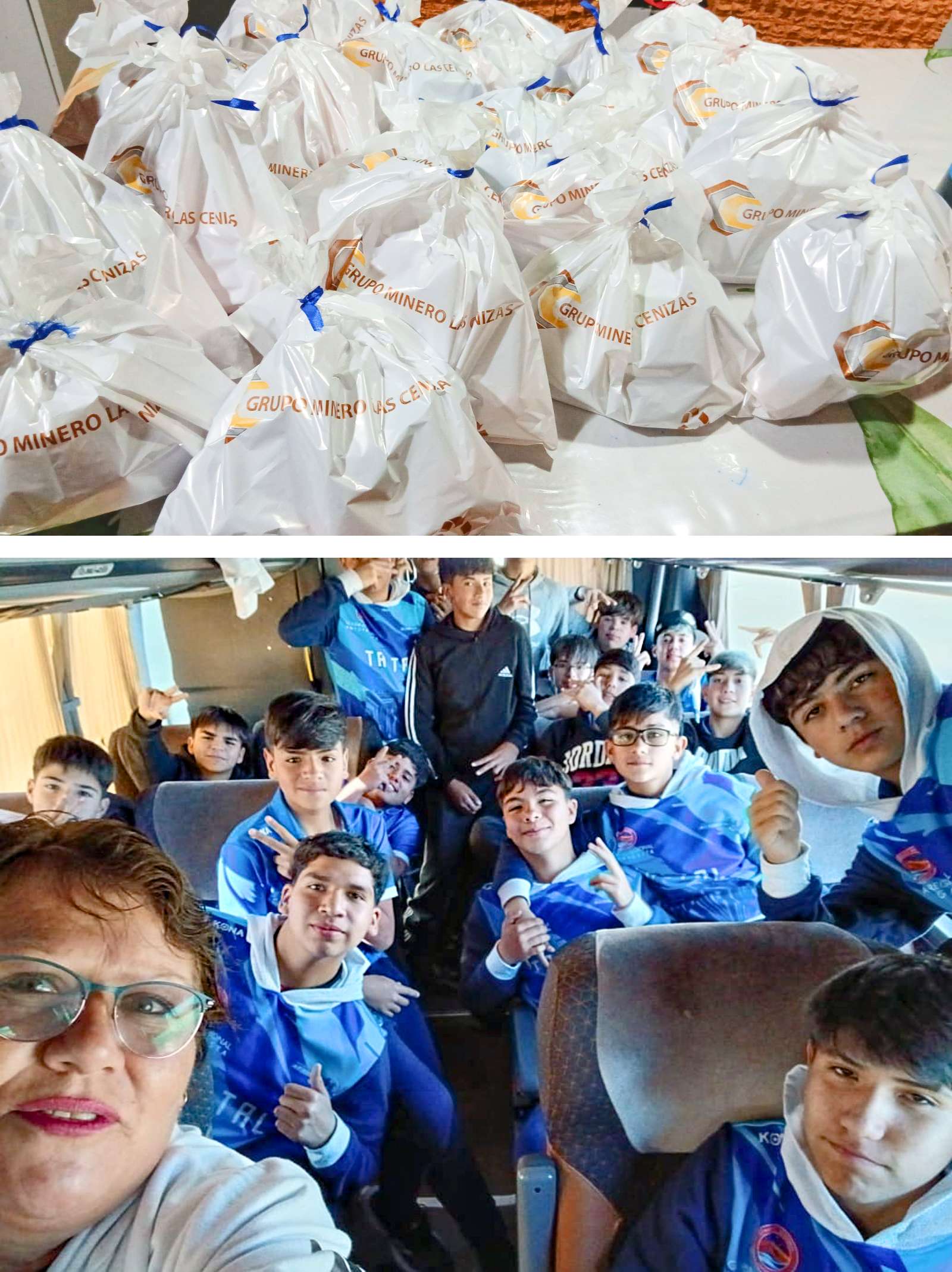 La empresa entregó 60 colaciones individuales para los jóvenes futbolistas del equipo local, aportando una adecuada alimentación en el viaje de ida y regreso.