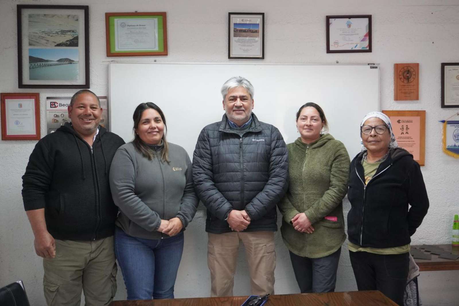 - Con el objetivo de revisar el avance del trabajo realizado en el Hatchery ubicado en las instalaciones de Minera Las Cenizas, Raúl Silva, Gerente de Operaciones del Distrito Taltal, recibió a Jocelyn Pizarro, Cecilia Villazón y Julio Herrera, secretaria, tesorera y socio del Sindicato de Pescadores, respectivamente.