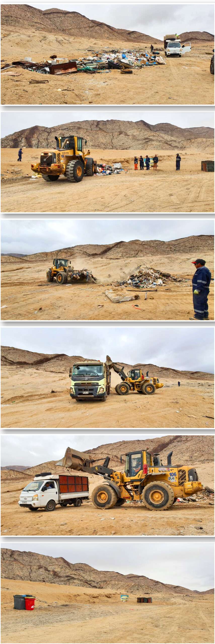 En esta actividad, la Faena se coordinó con la empresa contratista Branda, la cual facilitó el uso de su cargador frontal, permitiendo trasladar eficazmente los residuos hacia los camiones municipales, optimizando el proceso de recolección.