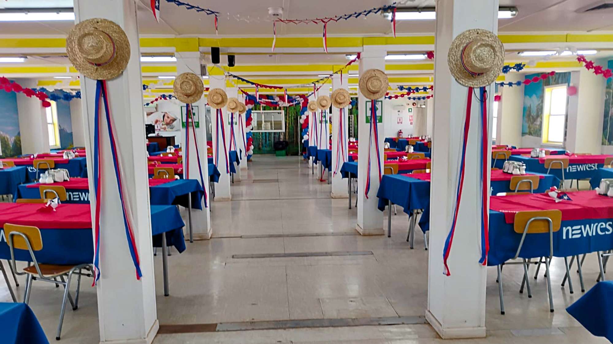 Con el objetivo de animar las jornadas laborales, el casino fue decorado con colores y símbolos patrios, recordando la alegría de los chilenos por esta importante fecha. Además, ofrecieron comida típica de estas fiestas, como asado, mote con huesillo y otros platos tradicionales.