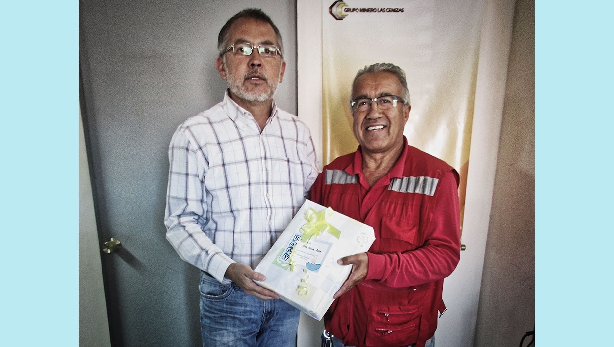Y como es tradición en estos casos, Recursos Humanos le hace entrega de un obsequio al feliz papá.