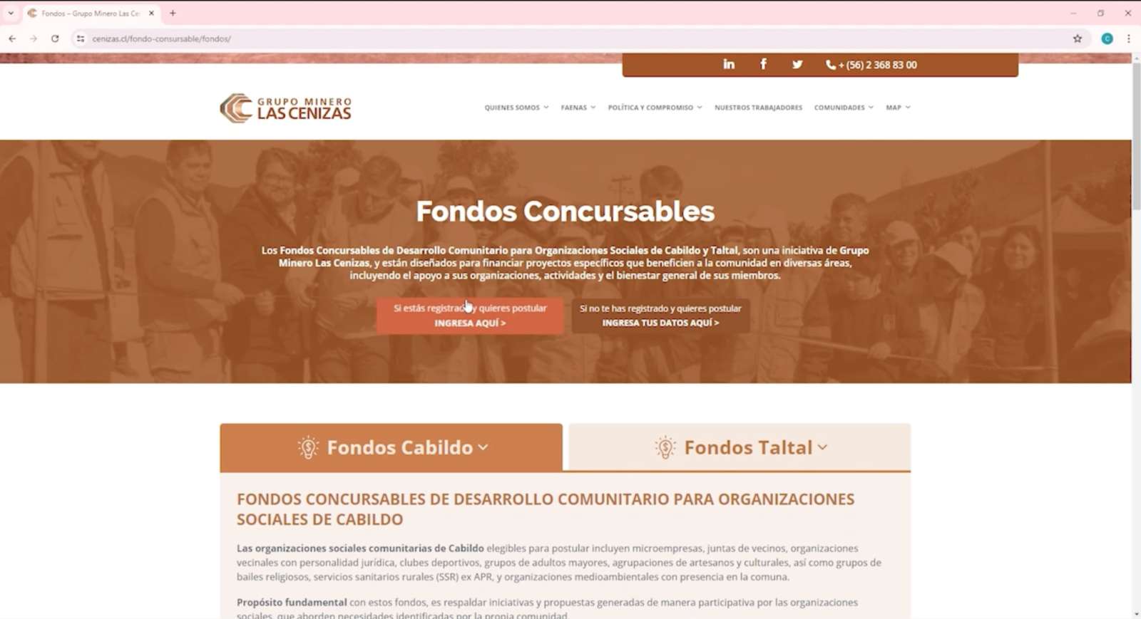 • La Superintendencia de Sustentabilidad del Grupo Minero Las Cenizas ha elaborado un video tutorial que busca acompañar y guiar, paso a paso, a los interesados en postular a los Fondos Concursables 2024.