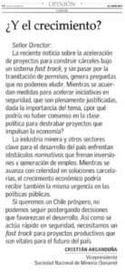Si queremos un Chile próspero, no podemos seguir postergando decisiones que favorezcan el desarrollo. Así como se actúa rápido en seguridad, necesitamos un fast track para proyectos productivos que son vitales para el futuro del país.